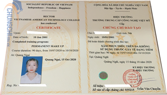 - CHỨNG CHỈ PHUN THÊU THẨM MỸ;